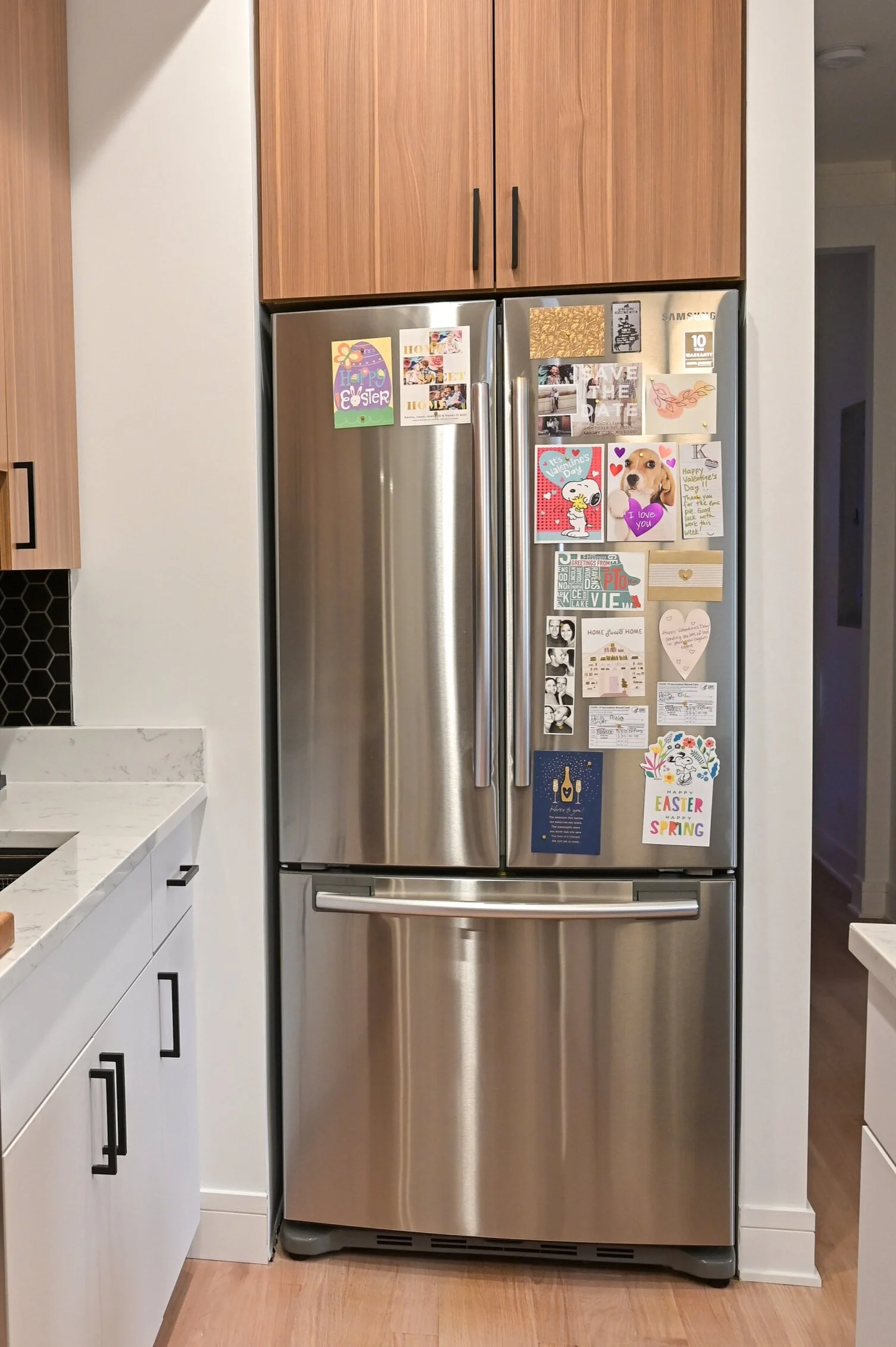 We had super-strict width requirements (only 30 inches…which we actually had widened to about 33 inches) because of the way our kitchen is laid out. That limited us quite a bit. But we were unwilling to compromise on quality drawers. We went through all the major brands at Abt and tested the drawers, until we found one that felt smooth and durable. We use the refrigerator more than any other appliance, opening and closing it multiple times a day. We wanted something that was easy to use, could hold as much as possible (give our restraints) and was well-organized.