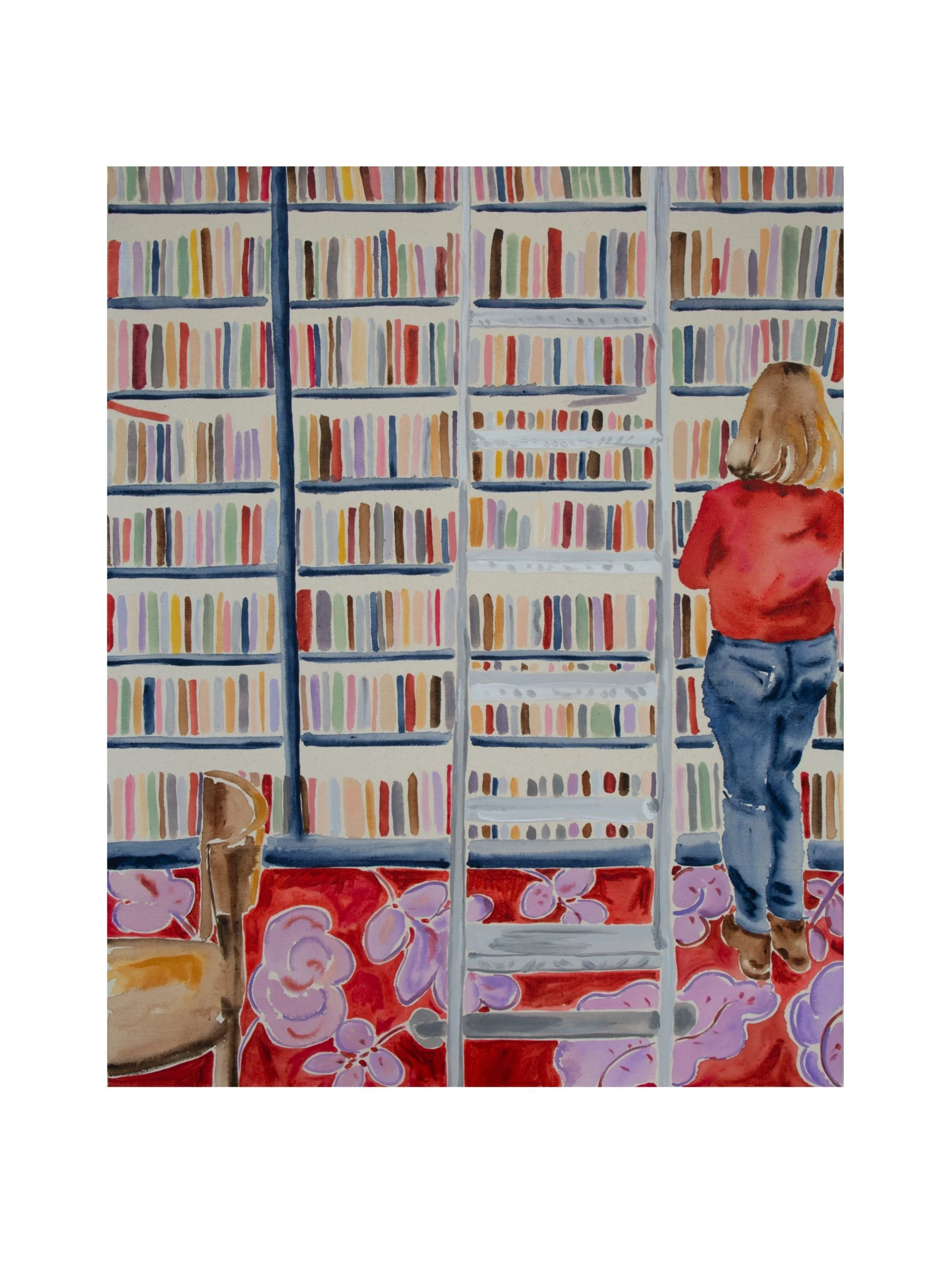 Books welcome dreaming! A book is simply words on paper. It's only magical when you allow yourself to get lost within it. The same is true with paintings. A painting is just canvas and paint until you allow yourself to be absorbed into it. This painting is full of stories that can take you to any part of the world and stretch your imagination beyond what you know to be possible. I welcome you to get lost in this paintings.