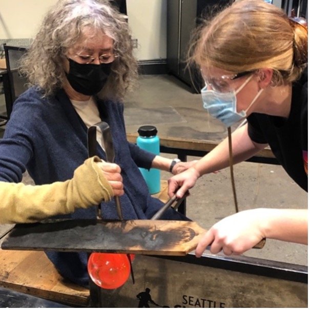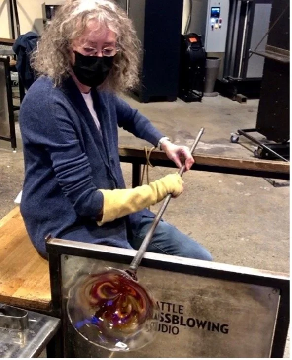 Certainly, I could (and did) learn about glassblowing by visiting museums and watching others work. But I wanted more! I wanted to understand how it actually felt to blow into the pipe and see the orb expand, to pull on the molten glass and guide it with tweezers and a wooden paddle. I wanted to know the smells and sounds of a hot shop—up close, through my own body.
